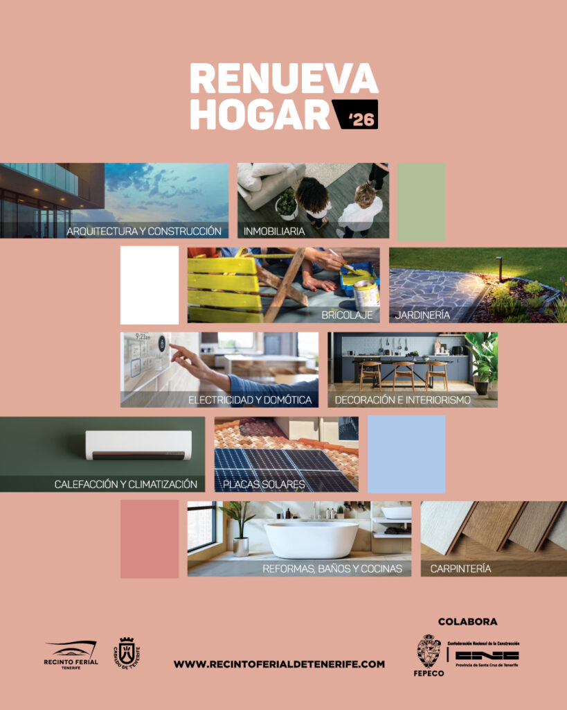 La segunda edición de Renueva Hogar se celebrará del 16 al 19 de abril de 2026 en el Recinto Ferial de Tenerife, consolidándose como el principal punto de encuentro en Canarias entre empresas del sector y personas interesadas en reformar, modernizar o mejorar su vivienda.